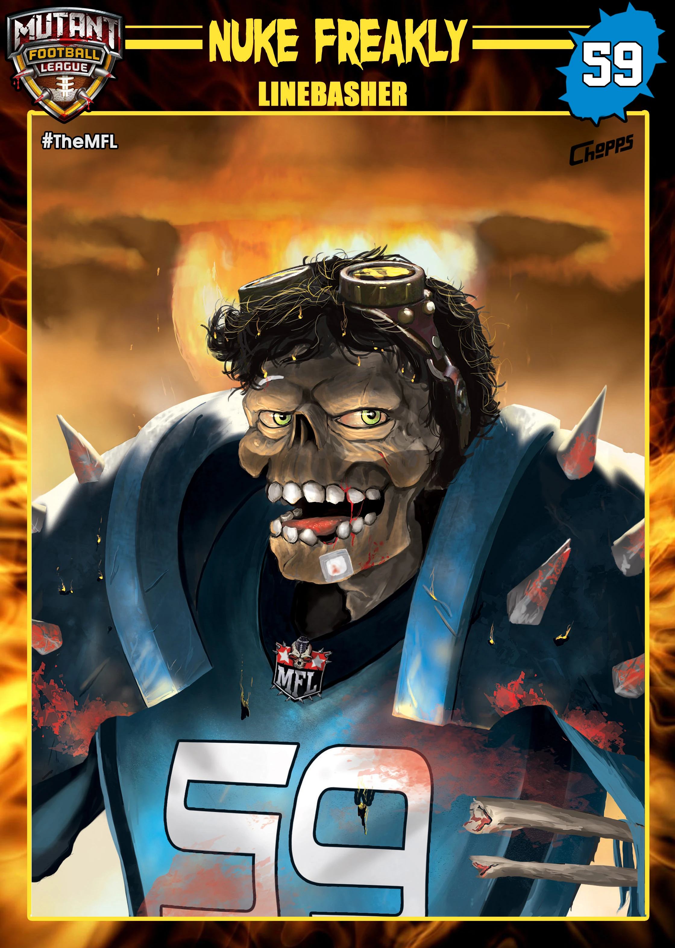 Nuke Freakly is one of the MFL All-Stars in Mutant Football League as a Line Basher on the Scarolina Panzers. He is a parody of Luke Kuechly.